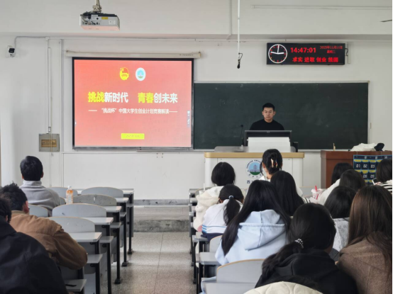 宣讲过程中,辅导员团队以“清晰认知+实例激励+实操指导”为核心逻辑展开分享。首先,针对学生对赛事的基础疑问,用通俗化语言系统介绍了“挑战杯”系列竞赛的核心定位、发展历程与赛事体系,重点厘清了“大挑”(课外学术科技作品竞赛)与“小挑”(创业计划竞赛)在竞赛方向、参赛要求、评审标准上的关键区别,帮助学生根据自身优势精准定位参赛方向。为增强赛事吸引力与学生参与信心,辅导员们集中展示了学校近年来在“挑战杯”系列竞赛中的亮眼战绩,通过列举获奖项目名称、团队构成、成果转化等具体案例,直观呈现了赛事对个人成长、学术提升与职业发展的重要价值,让学生真切感受到身边榜样的力量。针对2026年“小挑”校赛这一核心内容,辅导员们详细解读了竞赛主题、报名流程、作品要求、评审维度等关键信息,强调竞赛以“引导学生实事求是、刻苦钻研、勇于创新”为宗旨,不仅是展示学术科技成果的平台,更是培养实践能力、团队协作能力与创新思维的重要载体,鼓励学生结合专业特色与社会需求挖掘参赛选题。