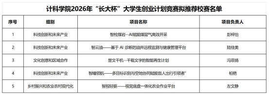 2026年“长大杯”大学生创业计划竞赛拟推荐校赛名单公示如下:
